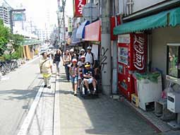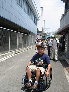 武庫川から鳴尾までは 比較的平坦な道ですが、 余りの暑さに和馬もバテ気味。 途中で追いかけてくる人、 通過駅で待ち受けてくるも 数人。 |