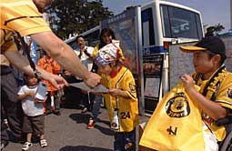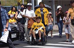 赤星選手が迎えてくれるというご褒美を用意してくださったのは、メイクアウィッシュジャパンの「難病の子どもの夢を叶える」というNPO法人組織。それにMBSテレビの取材が入り、学校の先生たち、幼稚園時代の先生方、友達とたくさんの方が同行してくださり、とても派手なゴールになりました。