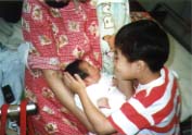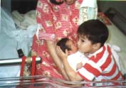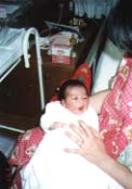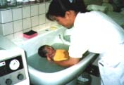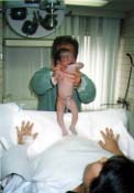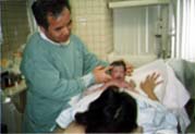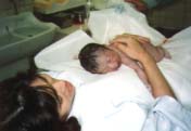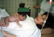 種田医院では出産後、 へその緒のついたままの 赤ちゃんをおかあさんの お腹の上に乗せてくださいます。 これが鳥で有名な「すり込み」で 大事なことだそうです。 |