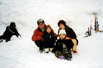 真綾は1才にしてもはや2シーズン目。このスキー場はおじいちゃんが電気もないころから来ていたという、懇意な場所。パパも若い頃はほとんど毎週のように来ていました。おかげでママも大変上手になりましたし、和馬がお腹の中にいるときも、このゲレンデで滑っていたほどです。