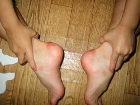 7月17日祇園祭巡行の日。下京中京の小学校中学校は当然のように朝の朝礼で学校はおしまい。子供たちは思い思いに巡行見物に行くのです。でもノートルダム小の和馬君は平常通りの授業。短縮なので午前中ですがそれがまたくせ者。いつも乗ってる4番のバスが路線変更になるのです。祇園祭の巡行コースを走る4番は、いつも河原町を四条までずっと南に下るのですが、四条から御池までは通行止め。河原町丸太町で東に向かい、川端通りを三条京阪まで行って折り返してしまう臨時ルートになるのです。その説明を学校から電話をかけてきた時点で説明すればいいと思っていたママは、定刻を過ぎても和馬からの電話がないことに心配。仕方なく河原町丸太町のバス停で待ち伏せすることにしました。でも、3台ほど待っても和馬は降りて来ず、3台目に乗ってきた5年生の続木光くんが「和馬が心配だから迎えに行ったら下駄箱の靴がもうなかった」と証言。どうやら待ち伏せ部隊が到着する前に河原町丸太町を通り過ぎていったようです。さあどうしよう。また学校へ戻ったのか、とりあえず学校へ連絡するかとパパママが大騒ぎしていると、おじいちゃんから電話。「ひとりで帰ってきた!」とのこと。経過をきくと、やはり「三条京阪で降ろされて、わからないので歩いてたら、知ってるところへでてきたので、そのまま歩いて帰れた」ということで、たまたま三条京阪から西に向いたようで、東に向いていたら・・・・という感じでした。写真の通り、両足は靴づれだらけ。素晴らしい冒険だったようです。でも、パパママはうんざりなのでさっそくSECOMの検索システムに入会する意思決定をしました。携帯電話くらいの発信器をランドセルの中に入れておくと、インターネットで現在地が検索できるシステムで、案外安く、ひと月500円(初期費用充電器等2000円)ということで、まあこれで今後はちょっと安心かな???でも、男の子にはこのくらいの冒険は必要なのですね!