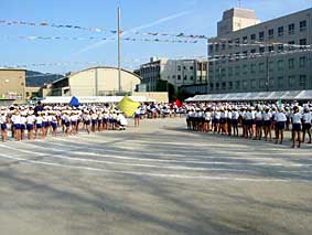 9月29日(土)ノートルダム学院小学校の運動会。昨年までのマリア幼稚園の運動会とのギャップに、カルチャーショックを受けました。なにせパパの小学校、豊園小学校(現在は洛央に統合)は全校生徒200人、ママの清水小学校も400人ということで、1000人規模の運動会など初体験。ほんとうに驚きました。