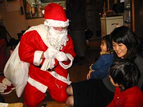 そういえば、このサンタさん、去年も吉村家に現れました。去年の真綾の反応は、サンタさんに向かって「バイバイ」の連発。どうやら本気で恐かったようです。でも、今年はしっかりと挨拶し、笑顔でお迎えできました。プレゼントももらい大喜びで送り出しました。
