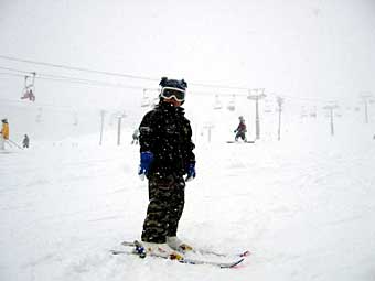 パパは去年買ったカービングスキーが大気に入り。なにせそれまで履いていたOLINの2mの板をいきなりカービンクの160cmに乗り換えたものですから、楽々ちんちん。「こんなにスキーって楽なモンだったんだ!」なんて言ってます。