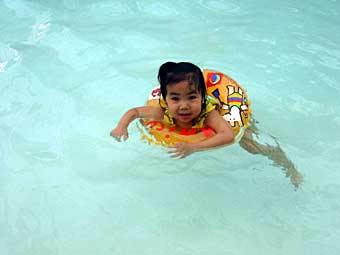 真綾は最初水を怖がっていたのですが、あっという間に慣れて、一人で浮き輪を使って泳げるようにまで発展。もはや次回をねだっております(ちなみに次回用チケットはすでに1枚40円で入手済み)。