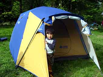 聖マリア教会が所有するキャンプ場は、京都府北桑田郡美山町の芦生というところにあります。水道も電気も通っていません。自然がいっぱいでとても素敵なところです。吉村家は年に最低3回は芦生でキャンプをします。真綾は何と生後三ヶ月でこの芦生キャンプ場に来、何とテントで一泊したという、キャンパー最年少記録保持者なのです。