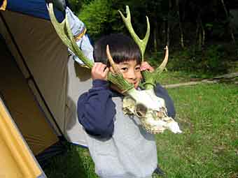 実は、我らが亨ちゃん(知る人ぞ知る、教会のスーパーマン)が見つけてきてくれた鹿の骸骨です。これで、和馬のGWの宿題「GWの報告」は完璧!!感謝!!