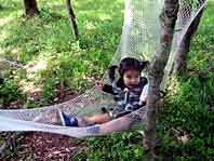 ハンモックで真綾ちゃん 実はこのハンモックから パパは転落して 現在外科通院中。 骨には異常ないのですが 痛いそうです。 |