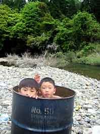 芦生名物、ドラム缶風呂。 特に夜に入ると 満点星の下、最高です。 熱くなったら 川に飛び込むのです。 |