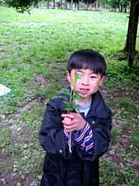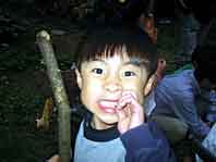 カミキリムシの幼虫を 食べています。 これが香ばしくって、 案外いけるそうです。 (といっても、食べたのは 殆ど子供たちだけ・・・) |