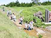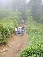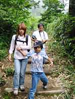 筋肉疾患のため早く歩けない和馬と吉村家は、「みんなと途中まで同行し、無理になったら戻る」というスタンスでとりあえずの参加。リュックサックにキャラバンシューズという出で立ちのみんなに交じって、大丸に買い物に行くような格好のママ。みんなに「山をなめとる!」といわれながら、山道を歩き始めました。
