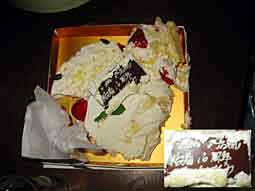 さて、キャンドルを16本用意して、、、とケーキを持ち上げた瞬間、ケーキの箱が変形して分解!なんとケーキは床にまっさかさま!!!