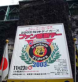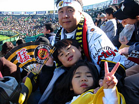 11月23日、今シーズン最後の甲子園です。星野監督の挨拶があるということで4万8千人の大観衆。聖護院支部長のT嶋家一同と一緒に朝6時に出発して甲子園に向かいました。ゲームやソフトボールやと和馬も真綾も最後の甲子園を満喫しました。