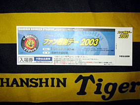 これがプラチナチケット。 オークションでは25000円まで 跳ね上がったらしい。 ちなみに巨人のファン感謝デーは オークションで350円! ざまあみろ! |