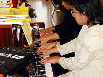 この日のために何度も集まり、真剣に練習したもので、3人の手が交差したり、ペダルを踏む足が絡まったりしながら、凄い演奏を披露しました。