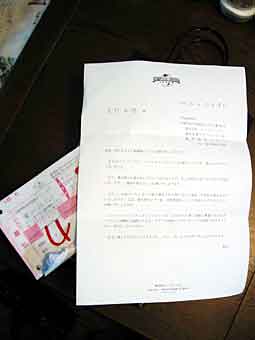 そこで和馬が忘れ物をしてしまいました。買ったおみやげと持っていったゲームボーイ等々・・・届けを出したのですが、センターには届いておらず、住所だけを知らせて泣く泣く帰りました。ところが昨日忘れ物センターから電話があり、見つかったとのこと。送っていただきました。(もちろん送料は着払いですが)