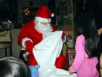 12月24日クリスマスイブ。午後7時半からの燭火礼拝を教会でご奉仕して帰ってしばらくして、去年も来てくれたサンタさんが今年もプレゼントを持ってやってきてくれました。和馬も真綾も眠たい目をこすって待っていた甲斐がありました。去年・一昨年と同様、二人にプレゼントを渡し、いい子にするように約束して去っていきました。