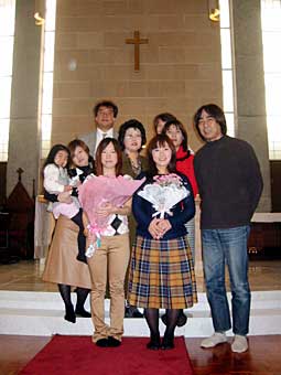12月25日(木)。降誕日礼拝で洗礼式が行われました。ラケル北川美貴さんとエステル江口詩織さん。北川さんはマリア幼稚園の新任の教諭で真綾の担任。江口さんは幼稚園の卒園生で同志社女子大の音楽科オルガン科の4回生、ママの後輩です。美貴先生はパパが、詩織ちゃんはママが教父母(名親ともいい、キリスト教上のお父さんお母さん)を引き受けることになりました。二人とも教名は考えてあげることになり、一生懸命考えました。ラケルは、真綾のもうひとりの担任であり、これもパパの娘であるリベカ浅間麻衣先輩の教名にも絡ませてうまく選ぶことができました。エステルは詩織ちゃんが幼稚園時代にクリスマスページェントで演じた役「星」のヘブライ語名ということで、こちらもうまく選んで感謝されました。