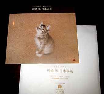 カラオケBOX大宴会のあと、大丸美術画廊に「川島渉日本画展」を見に行きました。この川島渉先生、何と弱冠36歳にして大丸で個展を開くという将来をかなり嘱望された逸材。実は、十数年前、パパと一緒にバンドをやっていた仲間だったのです。サックスプレーヤーで大阪のスタジオからよく一緒に帰って、阪急電車の中で日本画界の裏話をきいたものでした。