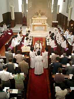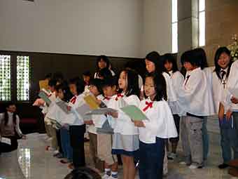 復活日大礼拝には聖歌隊に真綾も参加。美声を聴かせました。