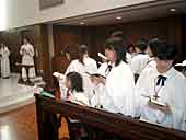 コッターをきて聖歌隊席に。 ずっとおりこうでした。 |