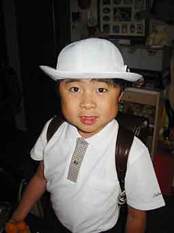和馬の学校も夏服になり、制帽も茶色から白に変わりました。