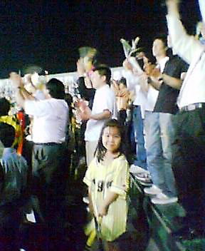 6月2日(水)あまりの阪神の試合の不甲斐なさに、パパは甲子園行きを決意。大阪へ校正を持って行ってそのまま甲子園へ。但し真綾同伴。仕事中どうしたかっていうと、いつもの甲子園グッズ(ナンバージャージ・メガホン・風船・扇子・旗・ラジオ・双眼鏡・その他)が入ったズタぶくろをもって、得意先の事務所の前で待たせておき、パパは何食わぬ顔をして得意先へ。商談を終えてそのままトイレに直行!すっかり甲子園スタイルになってそのまま向かいました。
