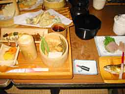 1日目の昼はこれまた美味。 天台宗真福寺の「竹膳料理」。 筍の刺身までいただきました。 |