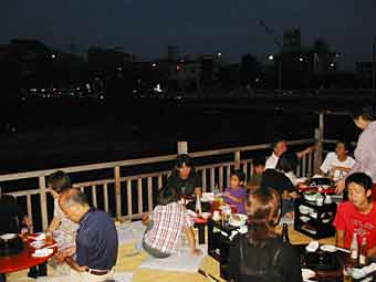 9月19日(日)町内の皆さんと楽しく西石垣の「かのこ」へお食事に行きました。鴨川の床でおいしいオイル焼きを腹いっぱいいただきました。