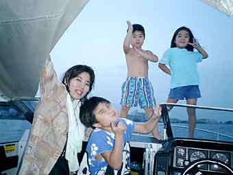 9月20日(月・祝)、パパは年に一度の近江カントリー倶楽部の開場記念杯。妻子をおいて朝からいそいそ出かけていきました。夕方帰ると家はもぬけの殻!「どこ行ってるの??」と電話をすると、何と琵琶湖の上!友人の某社長夫人(そういえば由理も社長夫人やけど!)の所有するマリーナへ連れて行ってもらい、バナナボート、水上スキー三昧!ジャグジーに入って極楽状態!思わず「ええなあ!」。