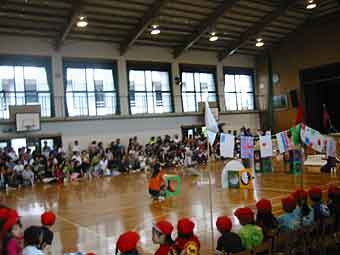 10月2日(土)聖マリア幼稚園の運動会。あいにくの雨のため、錦林小学校グランドでする予定が急遽同体育館ですることになりました。
