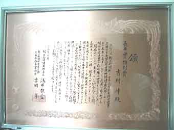 上の表彰状。実は銅板で出来ているのです。この重い重い銅板を持って阪急電車で帰ってまいりました!