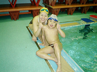 幼稚園の時は名門・踏水会、小学校にあがってからはYMCAのスイミングスクールです。あとから入ってきた人たちはどんどんクラスがあがっていく中、和馬はマイペースで悠々たるもの。水の中は体が軽く、車椅子なしでも歩けるので和馬はとても気分がいいようです。先生もマンツーマンで指導してくださって感謝感謝です!
