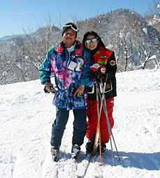 レッスン風景。隣がコーチ。 実はこの後、コーチが真綾のストックを なくしてしまって、 弁償してくれました。 |