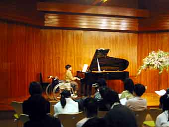 車椅子での入場後、真剣な顔で演奏。見ている方も手に汗を握りました。