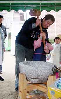 さて肝心の餅つきに至っては、何と28臼もの量。その内1/3は「つき」もしくは「臼とり」をしました。その上、子どもにつかすのも中腰でガンバリ、2〜3日後にはガクガクかと思われましたが、今年は案外平気でした。