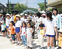 真綾も幼児競争に出場。 お姉さんに手を引いてもらって 賞品をいただきました。 |