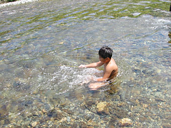和馬は写真の姿勢で川に座ったまま次々とカワムツを釣り上げて最高匹数を釣りました。