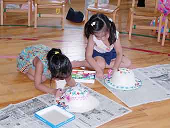 8月4日(木)〜5日(金)聖マリア幼稚園のお泊まり保育で、年長組は幼稚園に泊まりました。みんなで楽しく遊び、きもだめしで大泣きして、グッスリ寝たそうです。
