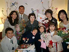 聖マリア幼稚園菅原園長先生や 担任の枡本先生とあおいちゃん もご招待を受けて 一緒にお祝いしました。 |