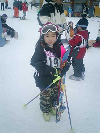 真綾はジュニア上級講習に入り、小学生に混じって堂々の受講。コーチは真綾だけをコブ斜面に連れて行ってくれたそうです。