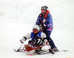 和馬はバイスキーに挑戦! 悪天候のためあまり 滑れませんでしたが 次回は・・・ |