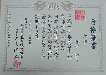 漢検6級見事合格!