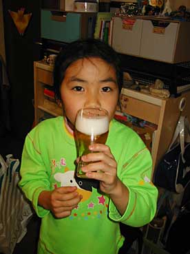 いやいや、これ、子供用のビール「こどもののみもの」なのです。もちろんノンアルコール。