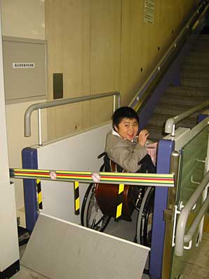和馬にとって大変ありがたい「烏丸バリアフリー化計画」が進められています。その一環の、阪急烏丸駅ホームへのエレベーターと、烏丸ー地下鉄間の約10段の階段についた昇降機がこのほど完成しました。