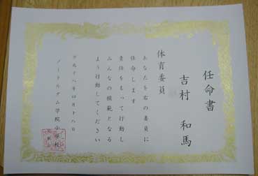 和馬がクラスの委員の任命書をもらって帰ってきました。
