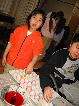 今年のイースターは4月16日。その前日に日曜学校の子供たちは教会に集まってイースターエッグを作りました。