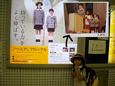 地下鉄松ヶ崎駅の改札を出た正面にノートルダム学院小学校の宣伝の看板があります。和馬は何度も掲載されいますが、今月号に真綾が出ています!