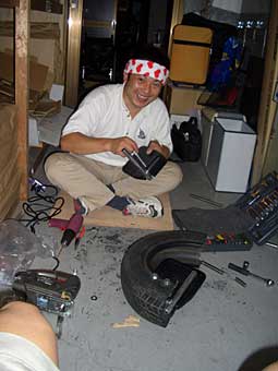 ママの従弟の潤君が和馬の電動車椅子サッカー用のバンパーを製作してくれています。玄人はだしの腕で汗をかきながらもスイスイと作業!素晴らしい出来です。