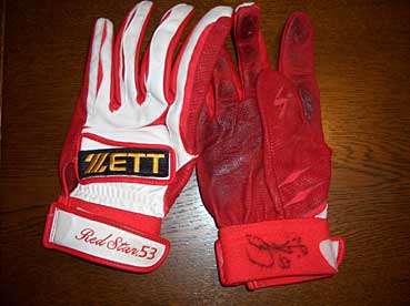 あの日、赤星さんにいただいた吉村家家宝の赤星サイン入り使用済みバッティンググラブ。なんと全く同じグローブが走塁用グラブとセットで赤星公式HPにてチャリティーオークションにかけられていたのです!